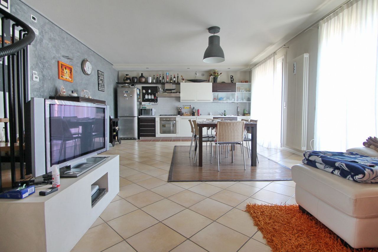 In centro A rosà proponiamo in vendita appartamento in piccolo contesto condominiale con esposizione sud/est/nord. Cucina e soggiorno di buone dimensioni tutta esposta a sud e terrazzino comunicante. Due camere grandi e due bagni. Scala interna che porta al piano mansarda dove trova posto uno studio o eventuale terza camera. Interrato con garage doppio